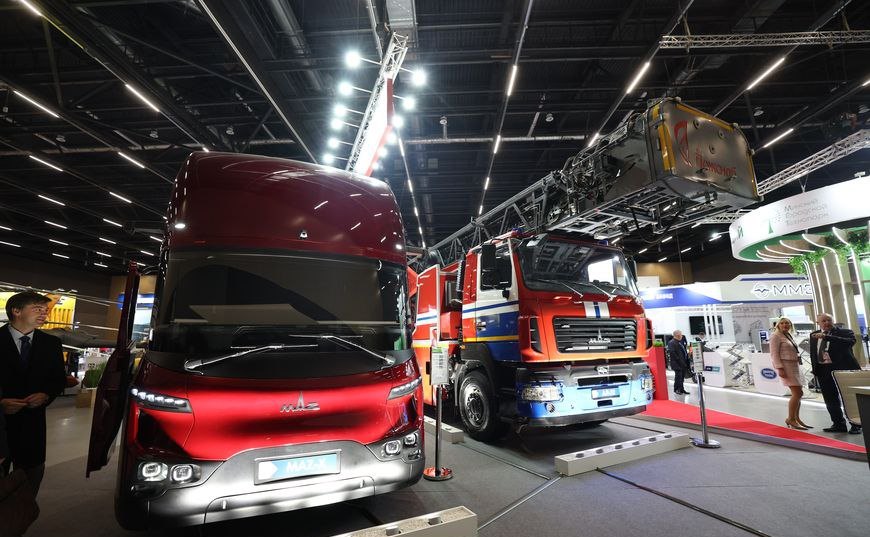 МАЗ на "ИННОПРОМ. Беларусь" презентовал перспективный гибридный тягач, туравтобус и электромусоровоз