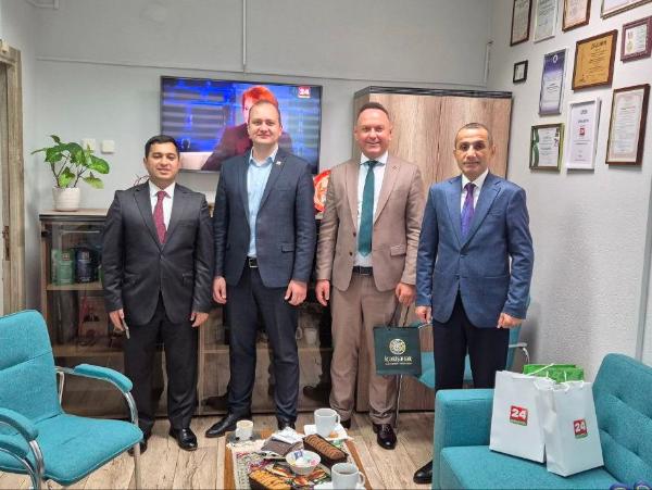 The management of news portals Editor.az and Tribunainfo.az visited Belteleradiocompany. During the visit, representatives of Azerbaijani media organisations held talks with the management of the International Satellite TV Channel "Belarus 24".