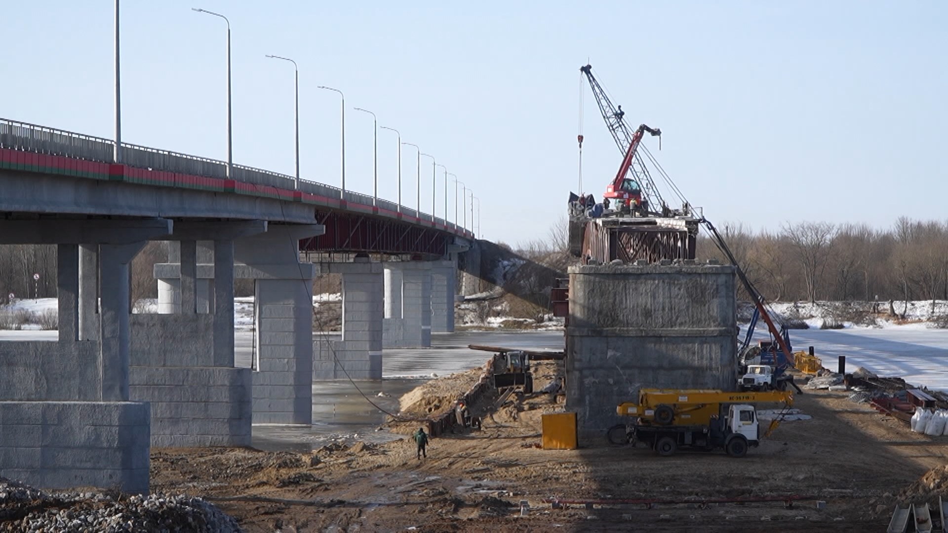 In Rechitsa District, specialists are continuously working on the reconstruction of the automobile bridge over the Dnieper River on the M10 highway. Construction and installation work is ahead of schedule. The main task is to strictly follow the technology so that the structure can withstand the modern flow. The planned reconstruction of the right side of the bridge is in the active phase. Upon completion of large-scale works, the structure will become wider, safer and more convenient.