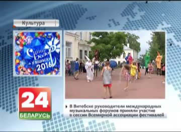 <div> <p>В Витебске в преддверии официального открытия международного фестиваля искусств царит праздничная атмосфера: выставки, театральные постановки и интерактивные представления. Сегодня в столице "Славянского базара" прошла очередная сессия Всемирной ассоциации фестивалей. Руководители различных музыкальных форумов со всего мира обсудили перспективы сотрудничества и приняли в ассоциацию новых участников, в том числе музыкальный фестиваль в Сан-Ремо.</p> <p>Культурные мероприятия продолжил фестиваль кукольных театров. В этом году участниками "Кукольного формата" станут труппы из Беларуси, России, Украины.</p> </div>