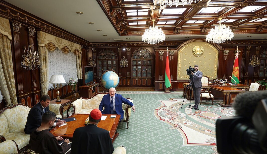Глава государства провёл встречу со спецпосланником Папы Римского. «Я ознакомлен в деталях с вашим визитом. Очень рад, что вы вспомнили Беларусь и вам понравилась Беларусь, понравились наши люди. Все. Не только католики, православные. И другие люди. И даже мусульмане очень хорошо восприняли ваш визит, - сказал Глава государства. - Поэтому я искренне рад встретиться с вами». В свою очередь, говоря о существующих в Европе и мире проблемах, представитель Ватикана обратил внимание, что те или иные различия не должны мешать диалогу. «Диалог — это важно. Смотреть в глаза друг друга, понимать, что у нас есть то же самое — душа. Тогда всё возможно, когда ты чувствуешь, что уважаешь и любишь человека. Будущее в наших руках и руках Божьих», - заявил Клаудио Гуджеротти.