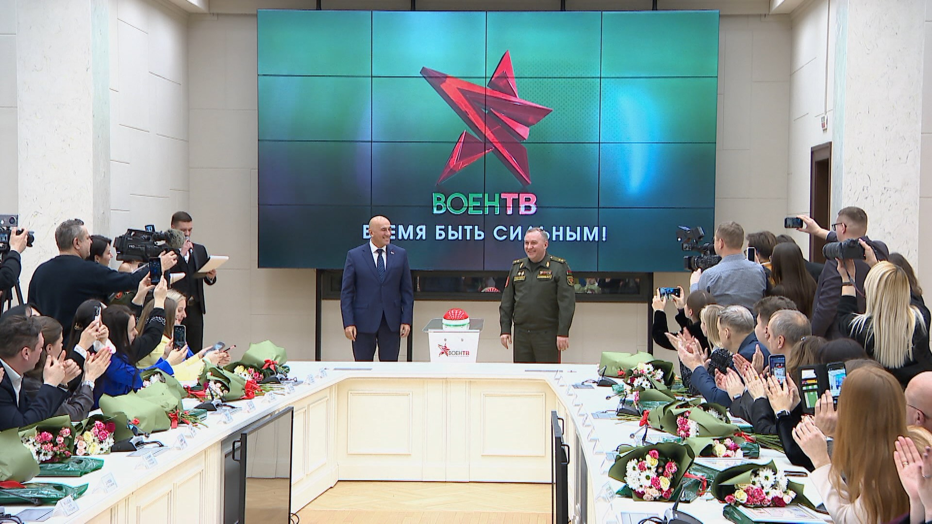Донести до зрителя оперативную и достоверную информацию о развитии Вооружённых Сил, рассказать о людях, которые 24 на 7 находятся на защите Родины — такие задачи поставлены перед новым телеканалом «ВоенТВ». Торжественная церемония запуска обратного отсчёта до начала его вещания прошла с участием министра информации и главы оборонного ведомства Беларуси. Проект создан на базе телекомпании «ВоенТВ», которая более 30 лет освещает жизнь белорусской армии. «Арсенал» и «Анфас» — её самые знаковые проекты. Теперь у военных журналистов — собственная эфирная площадка. Старт трансляции — 23 февраля, в День защитника Отечества в 10 утра на 12-й кнопке. Ежедневная вещательная сетка рассчитана на 18 часов — с 06:00 до полуночи.