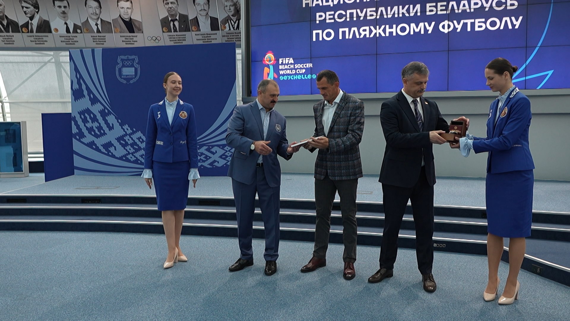 Серебряных призёров ЧМ по пляжному футболу чествовали в НОК Беларуси