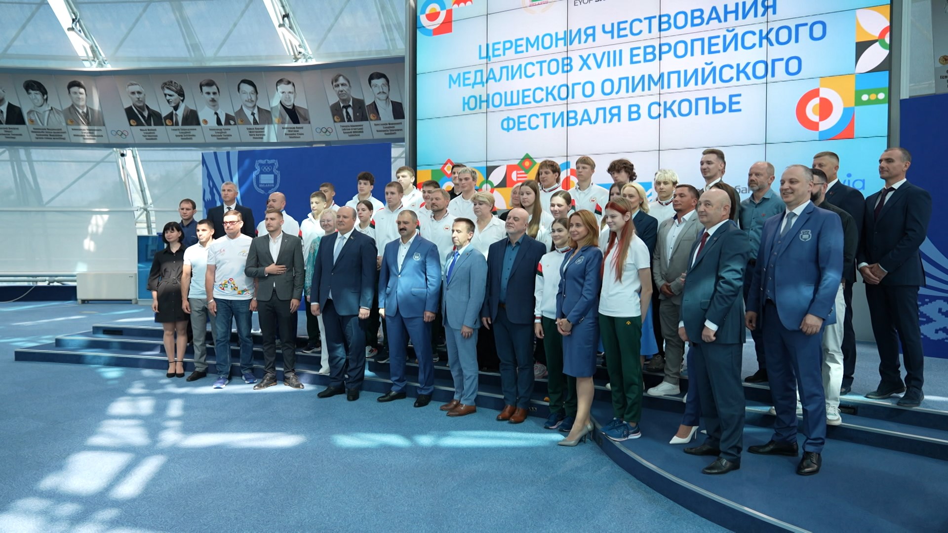 В НОК Беларуси чествовали победителей и призёров XVIII летнего Европейского юношеского олимпийского фестиваля. На соревнованиях в Скопье в июле 46 белорусских спортсменов завоевали 13 наград: 5 золотых, 4 серебряные и 4 бронзовые. Команда заняла 12-е место среди 49 стран. Призёры ЕЮОФ получили денежные сертификаты и памятные призы от НОК Беларуси, аналогичным образом были отмечены тренеры национальных команд по плаванию, пулевой стрельбе и тхэквондо, осуществляющие подготовку юных чемпионов. Также ребята были награждены подарками от спонсоров и Минспорта.