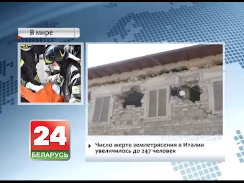 <div>Число жертв землетрясения, которое произошло вчера ночью в Италии, увеличилось до 247 человек. Продолжаются активные поисково-спасательные работы. Многие люди до сих пор считаются пропавшими без вести. Напомним, 2 сильных подземных толчка практически полностью разрушили города Аматриче и Аккумоли. А сегодня в центральной части страны - новое землетрясение магнитудой 4,2. О его возможных последствиях информации пока нет. В Италии объявлен национальный траур и приспущены флаги. Соболезнование руководству страны, а также родным и близким погибших и пострадавших выразил Президент Беларуси Александр Лукашенко.</div>